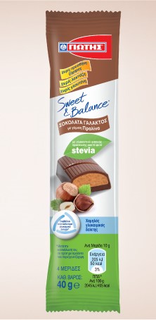 - 3 τμχ ΓΙΩΤΗΣ -Sweet & Balance Σοκολάτα Γάλακτος με γέμιση Πραλίνα με Στέβια Χωρίς γλουτένη Χωρίς λακτόζη 40g (ανάλωση 05/2027)