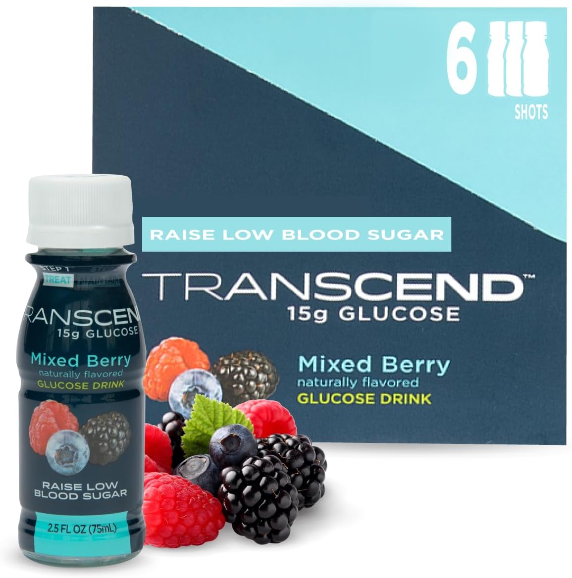 - 2 εξάδες (12 πόσιμα μπουκαλάκια γλυκόζης) TRANSCEND Mixed Berry 15g Glucose Drink 6 x 2.5 FL OZ Best By 10/25